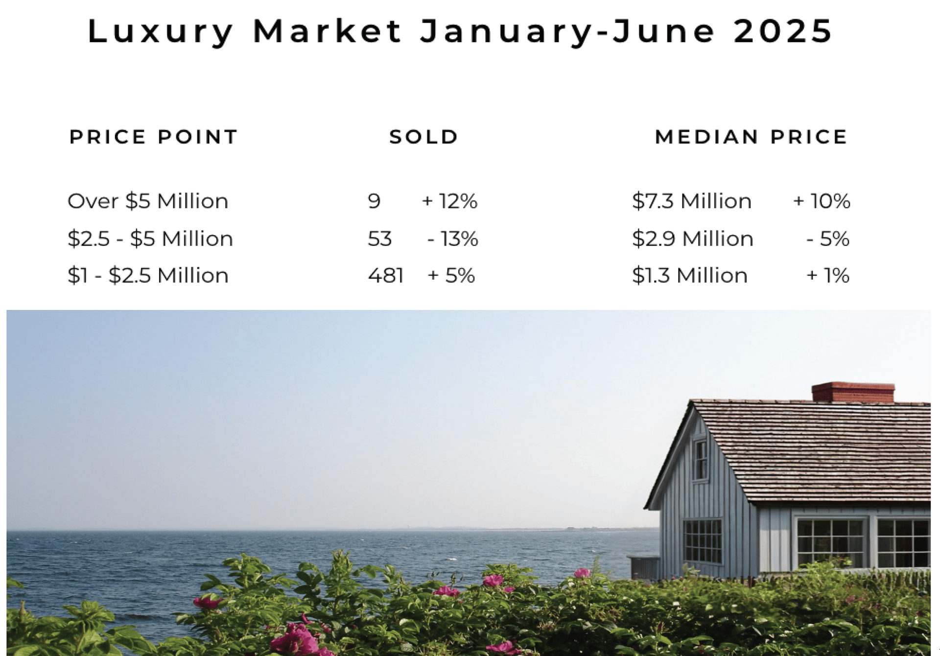 The highest-priced sale so far in 2025 was $12 million for a 1969 house in Kennebunkport, located on a rocky point — a property that may end up as a tear-down. It offers spectacular views over the coastline, but the house itself is a mishmash of a cottage exterior and a contemporary interior.