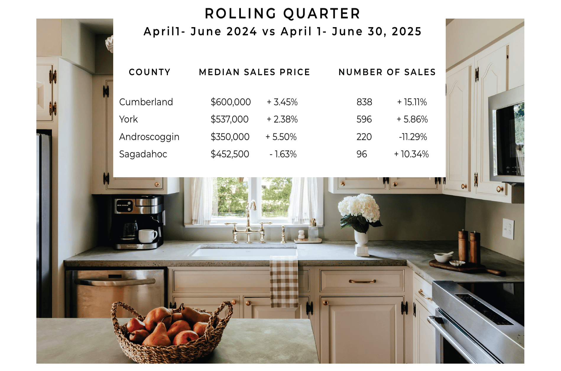 Overall, the median sales price in the state rose 4.94% to $425,000 in June 2025, but Cumberland County hit an all-time high median price of $600,000 for the rolling quarter of April 1 to June 30. For a typical buyer placing 20% down—and with the current interest rate of 6.9%—this equates to a monthly payment of $3,798 before adding in taxes and insurance—a steep price for first-time buyers to manage. However, there are more houses for sale, as inventory in June crested at 5,047—the last time it exceeded 5,000 was October 2020!